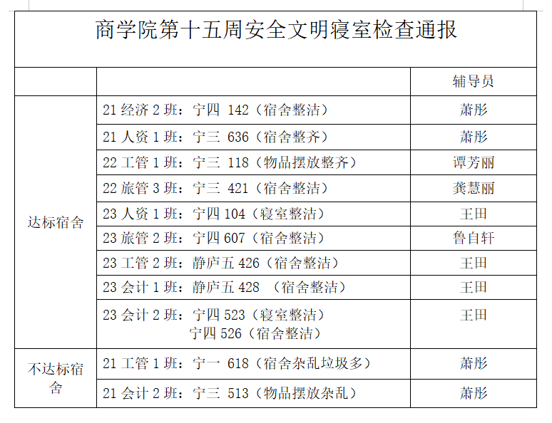 公司将对文明宿舍创建中出现的问题及时作出整改,对出现问题的宿舍进行教育批评。现将结果通报如下: